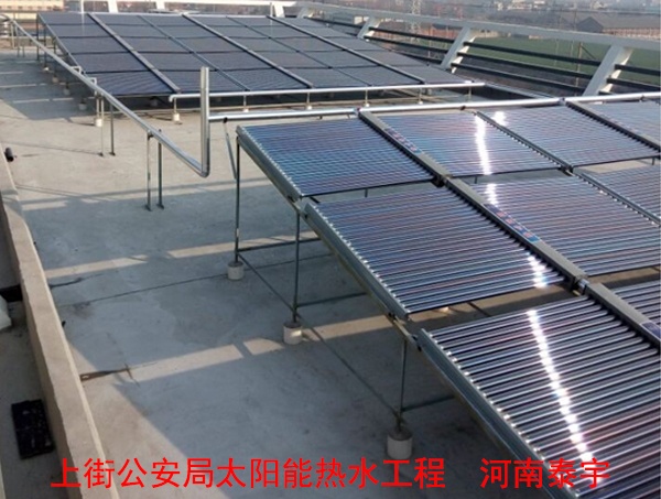 上街公安局太陽(yáng)能熱水工程:該圖為上街公安局太陽(yáng)能熱水工程,該項(xiàng)目主要提供集中洗浴熱水,采用力諾太陽(yáng)能熱集熱器與原有鍋爐相結(jié)合,主樓與副樓兩個(gè)系統(tǒng),熱水量日供20T左右,節(jié)能效果顯著!