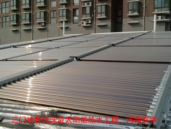 三門峽君悅洗浴太陽(yáng)能熱水工程該圖為三門峽君悅洗浴太陽(yáng)能熱水工程,該項(xiàng)目主要采用力諾真空管集熱器與原有空氣能熱泵相結(jié)合,單個(gè)系統(tǒng)日供熱水量約為10T左右,節(jié)能效果顯著!