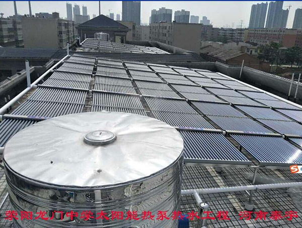 滎陽龍門中學(xué):瀚宇龍門實驗學(xué)校共有男女宿舍樓兩樓,每棟樓設(shè)計用水量為20T!共計40T/日。該項目采用力諾真空管太陽能+美的空氣能熱泵機組相結(jié)合。共計兩套系統(tǒng)。太陽能共計集熱面積230平方,熱泵機組10P四臺。